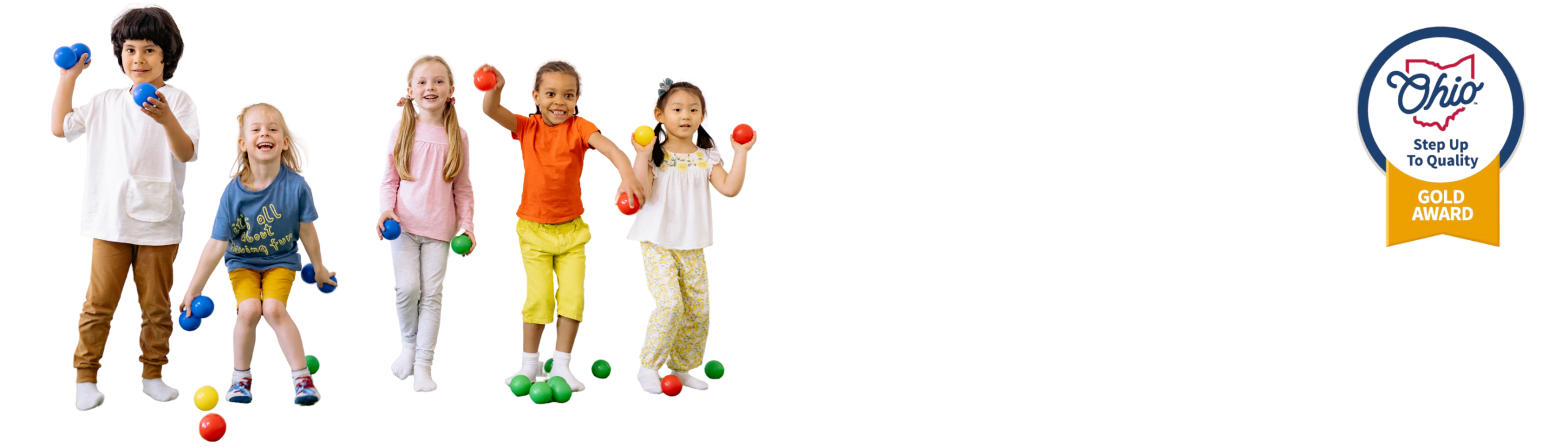 • Gold Standard Care: We are fully certified by the State of Ohio with a Step Up to Quality GOLD rating. Our qualified staff provides a safe, supportive environment for your child to grow.